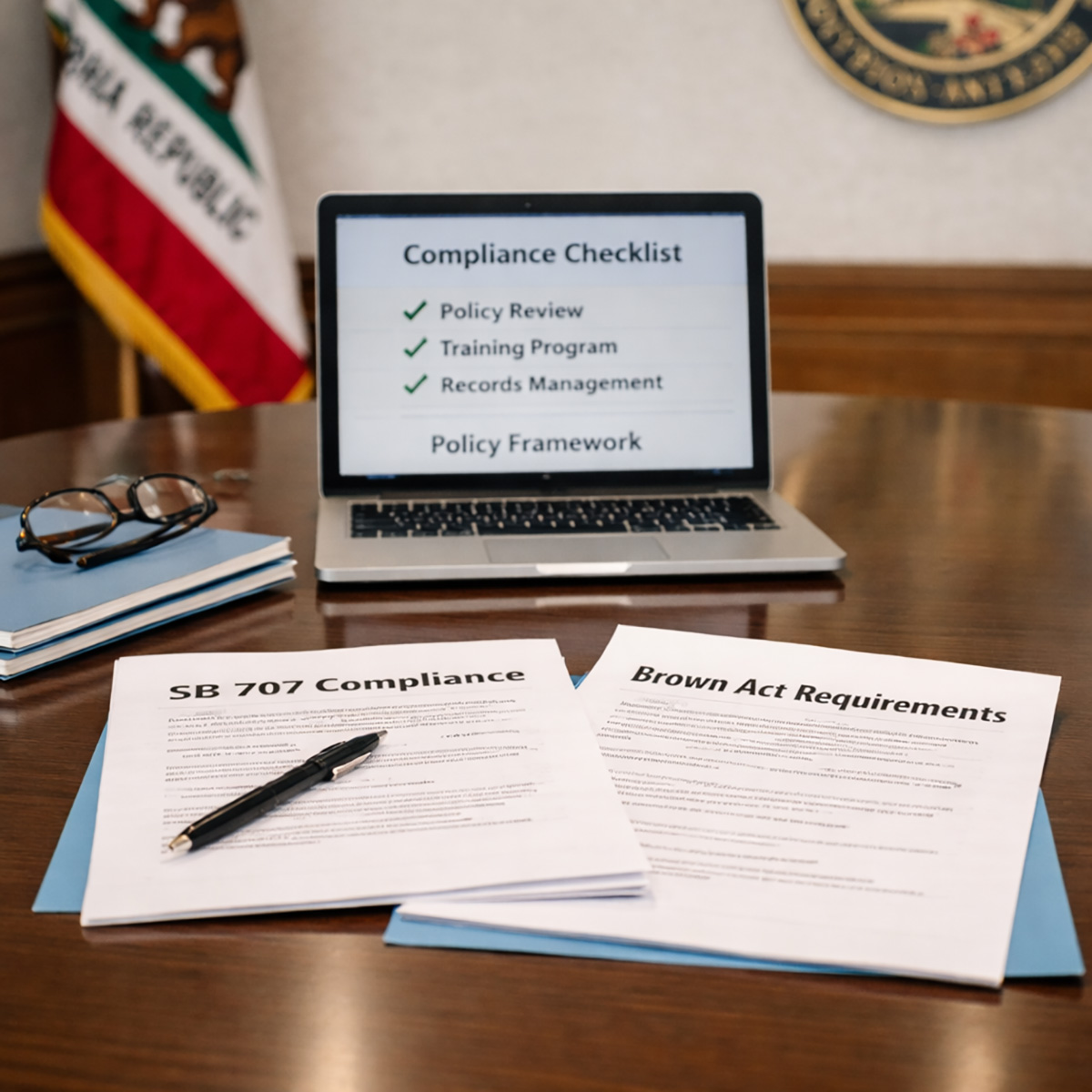 This article is intended for informational purposes only and does not constitute legal advice. The information provided is general in nature and may not apply to your specific situation. SB 707 contains numerous nuances and exceptions not fully detailed in this article. For advice regarding your particular circumstances and agency, please consult with a qualified attorney experienced in California public entity law.